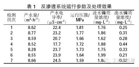 结果表明,系统经过半年的运行,出水电导率始终维持在25 μS/cm以下,反渗透膜对废水中残余重金属镍离子具有较好的截留效果,达80%以上。